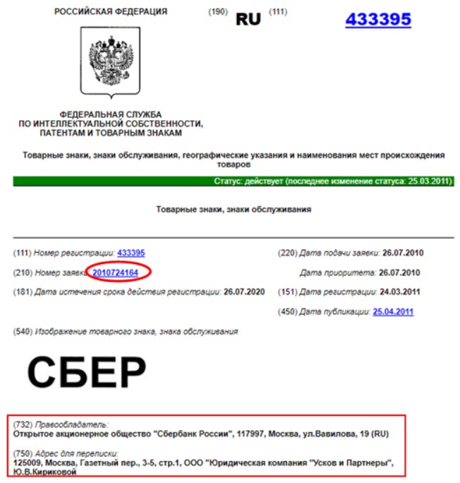 Более подробную информацию о владельце товарного знака можно посмотреть, кликнув на номер заявки. В нижней части открывшегося документа расположены скан-копии заявления с данными о заявителе.